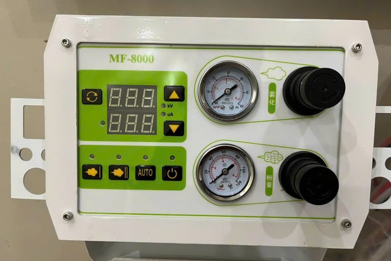 Điện áp tùy biến: Máy có nút chuyển đổi giữa uA và kV, giúp người vận hành dễ dàng chuyển đổi, tối ưu hóa quá trình phun cho từng loại sản phẩm.